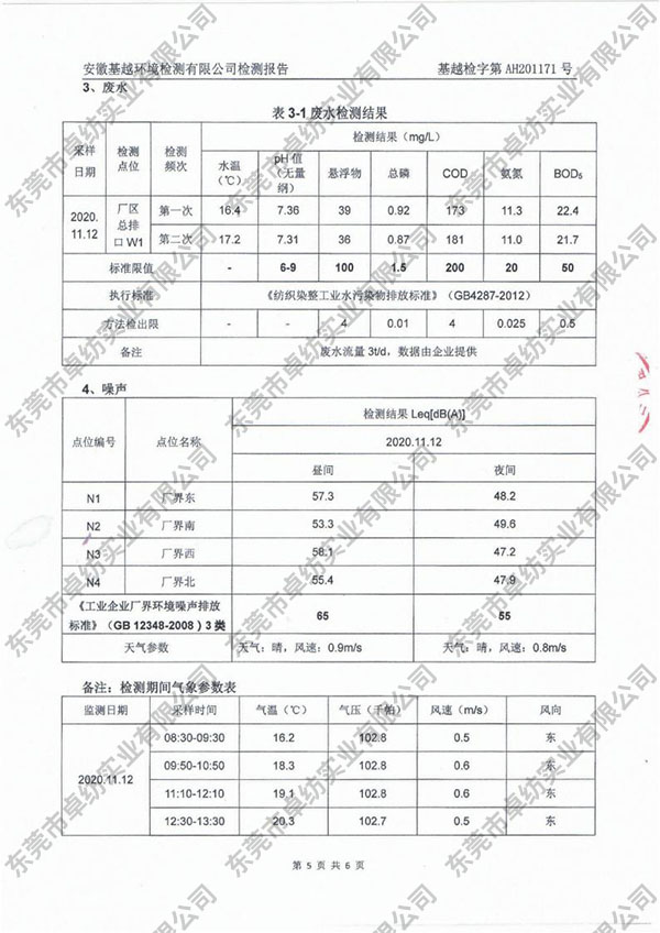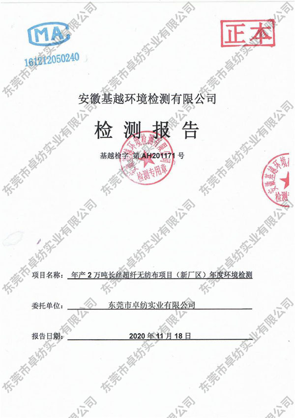 超纤无纺布环境检测报告