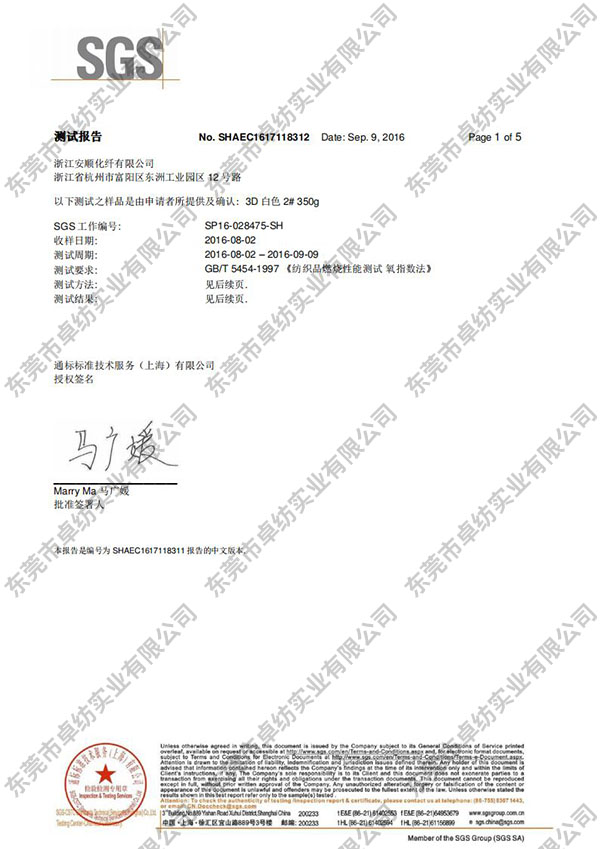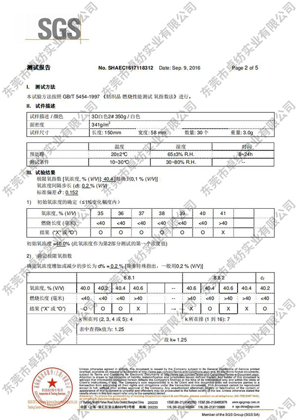 安顺阻燃3D 白色 2# 350g 氧指数