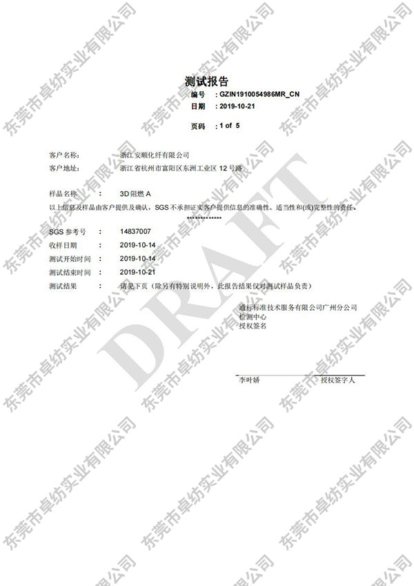 安顺阻燃3D 白色 2# 350g 氧指数