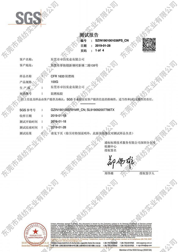 2019.01月100g阻燃棉灰分白色