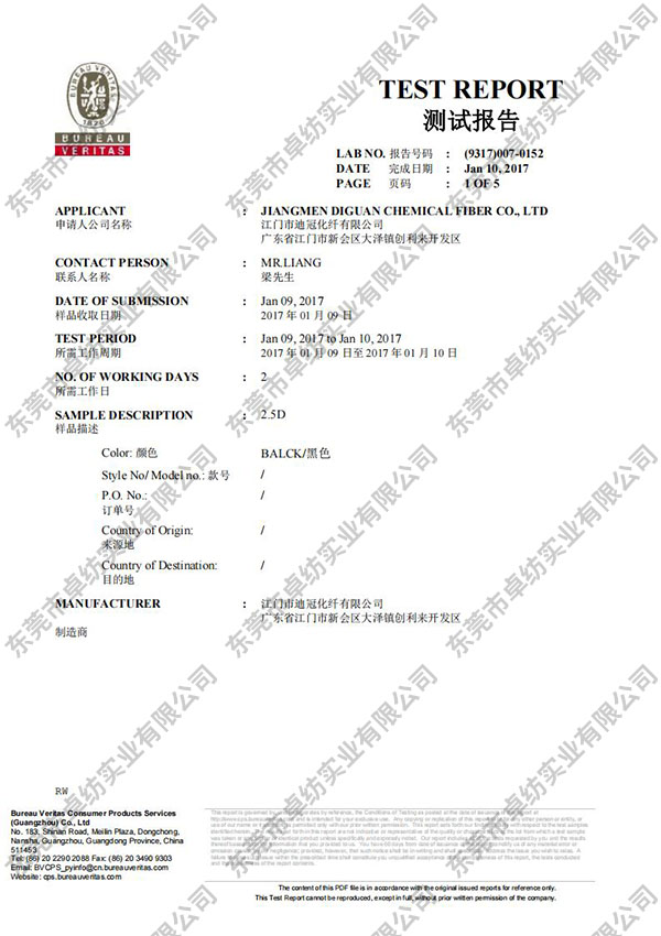 预氧丝纤维测试报告