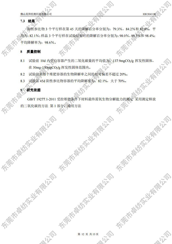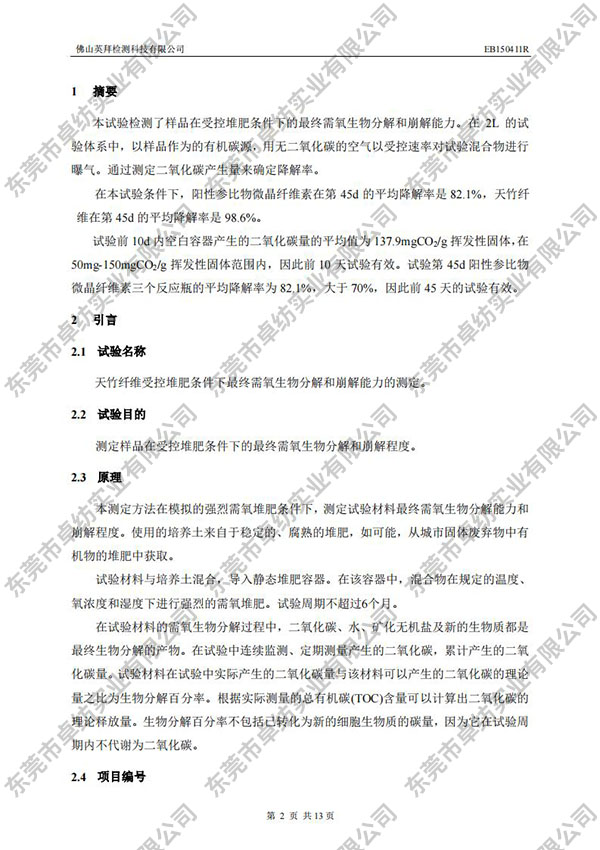 天竹纤维生物降解EB150411R检测报告