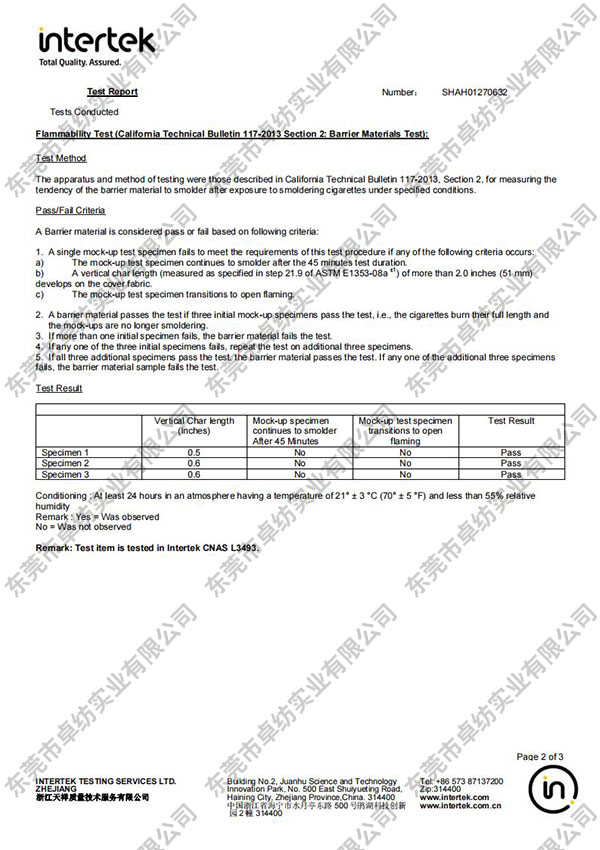 上一个:卓纺白色阻燃黏胶CFR1633检测报告