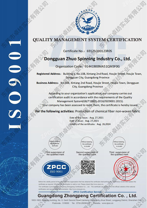东莞市卓纺实业有限公司-QMS证书英文